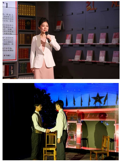 旅游管理系黨支部副書(shū)記王娟以《思想浸潤(rùn)心靈 傳文脈繼往開(kāi)來(lái)——習(xí)近平文化思想在浙江的溯源與實(shí)踐》為題,分享了《習(xí)近平在浙江》的讀書(shū)心得,情景劇《遺址邊的吶喊》,將思想性、藝術(shù)性及感染力高度結(jié)合,讓觀眾在情感共鳴中感受習(xí)近平文化思想的偉力。